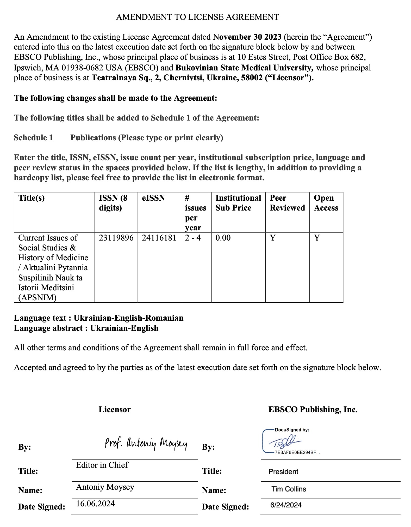 "CURRENT ISSUES OF SOCIAL STUDIES AND HISTORY OF MEDICINE"