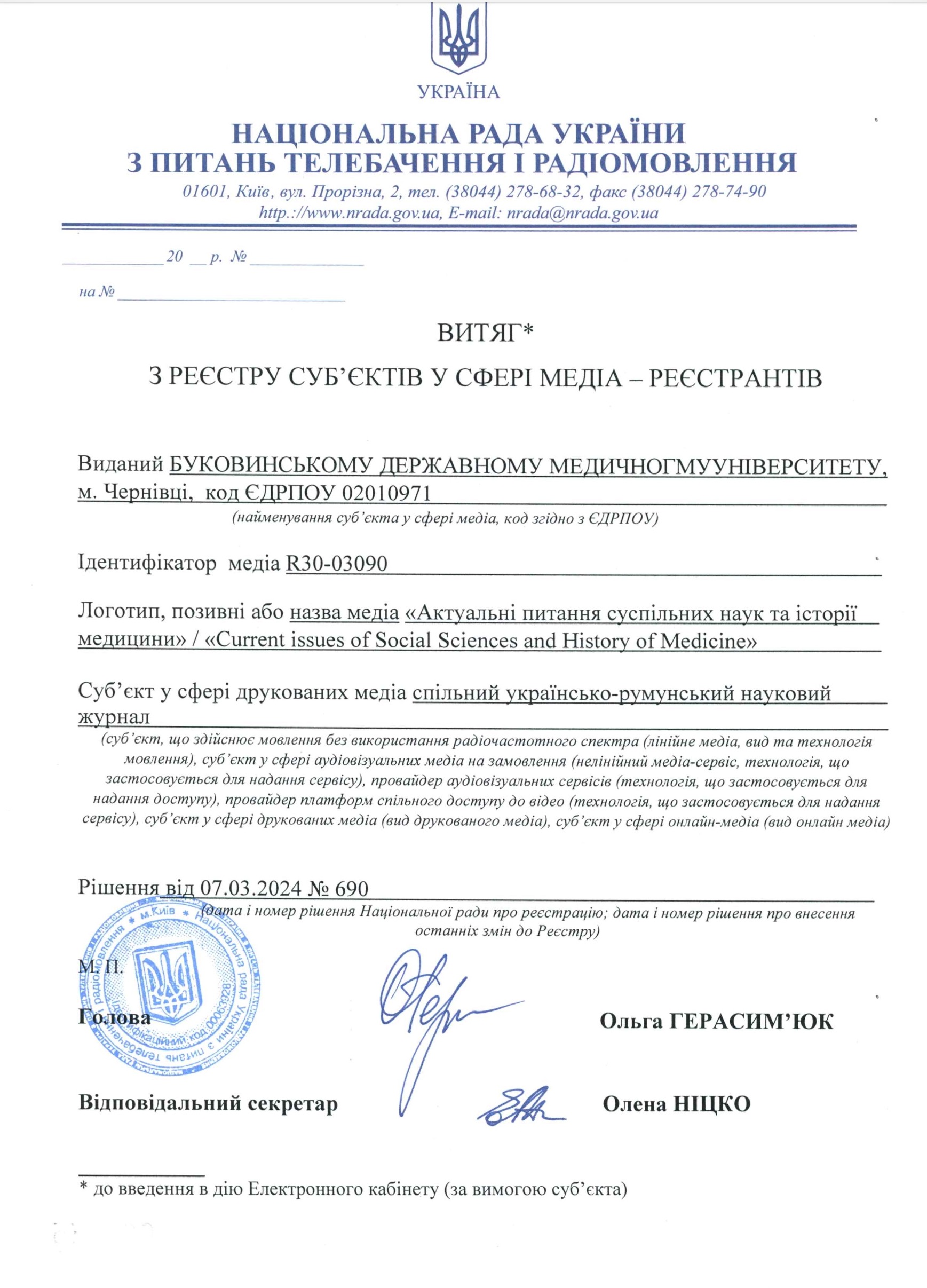 Журнал включено до Реєстру у сфері медіа (рішення № 690 від 07.03.2024 Національної ради України з питань телебачення і радіомовлення; Ідентифікатор медіа R30-03090).