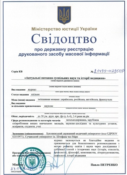 "АКТУАЛЬНІ ПИТАННЯ СУСПІЛЬНИХ НАУК ТА ІСТОРІЇ МЕДИЦИНИ"